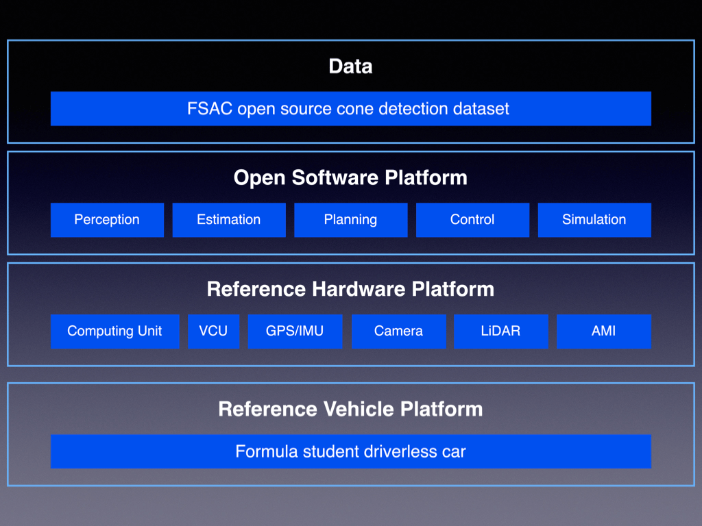 几年来,经过几届队员的不断努力,北京理工大学无人驾驶方程式车队在中国大学生无人方程式大赛 (FSAC) 中获得了四年三冠的优异成绩,并逐步形成、完善着自己的无人系统体系。针对国内车队与国外车队仍差距较大的问题,我们希望通过开源简单稳定的算法,并构建开源数据集,帮助参与大学生无人驾驶方程式赛事的车队在无人系统层面共同发展、共同进步。2020年,我们成功开源感知、定位和规划的部分算法(详情),并向多所高校提供数据集;2021年,我们聚焦整个无人系统的构建工作,为大家提供了一个可以简单上手并实现算法仿真的基础系统全家桶,同时在多所高校参赛队的支持和交流下不断完善着FSACOCO数据集(详情);2022年,我们再次规范无人系统开源框架,开源基于PaddlePaddle深度学习框架的算法部署功能包,并更新了FSACOCO数据集的提交策略。