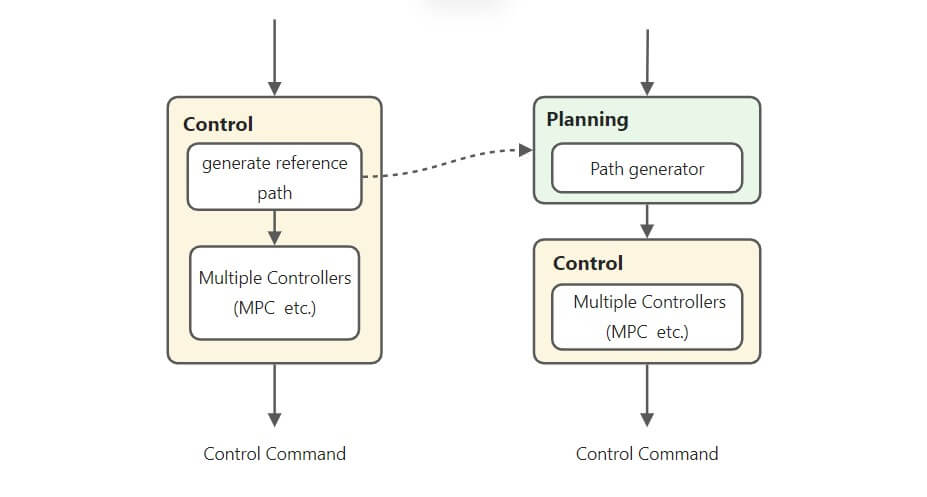 在此前,我们将生成参考轨迹、生成预测轨迹并跟踪控制的部分直接集成于MPC控制模块中;在fsd_algorithm 3.0里,为将开源算法平台构建为更为规范的“感知-估计-规划-控制-仿真”,现将参考轨迹的生成部分独立为path_generator功能包置于规划模块中,便于更为灵活的规划和控制算法调试。